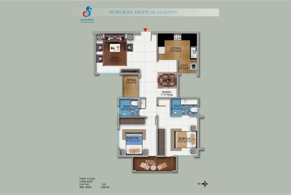 Type of Flats: | 2 BHK - 1130Sqft to 1210Sqft - 10 Units |
