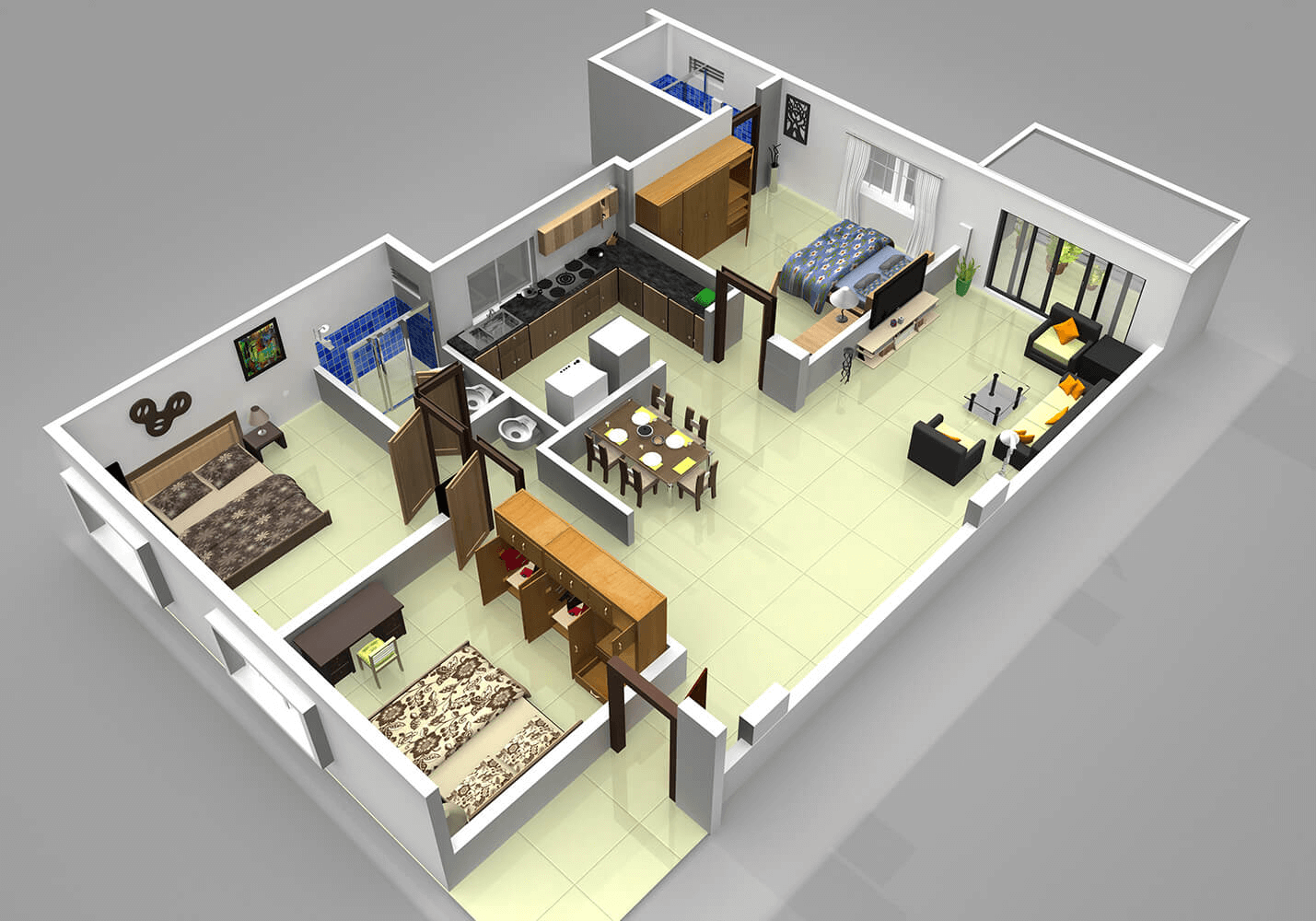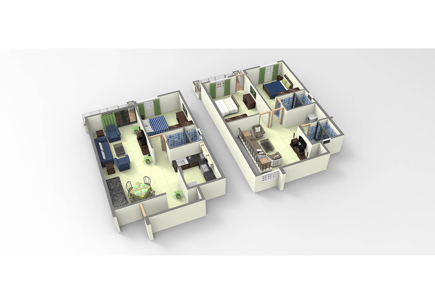 Vitrified tiles in Living room, Dining room, Bed Room and Kitchen. Anti-skid ceramic flooring for Bathrooms and balcony. Granite flooring for Lobby, staircases and corridor. - Kitchen