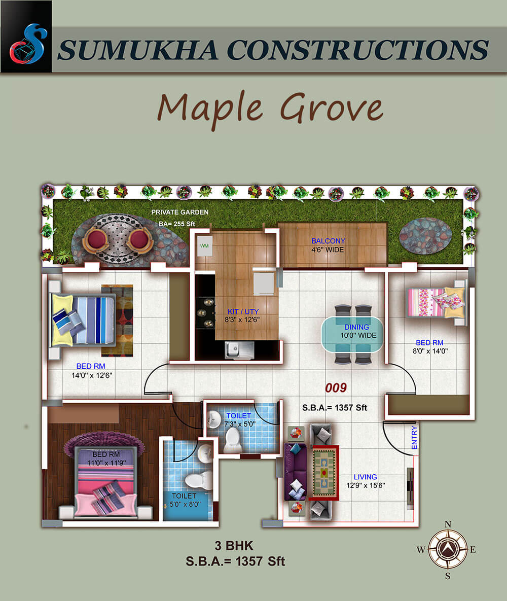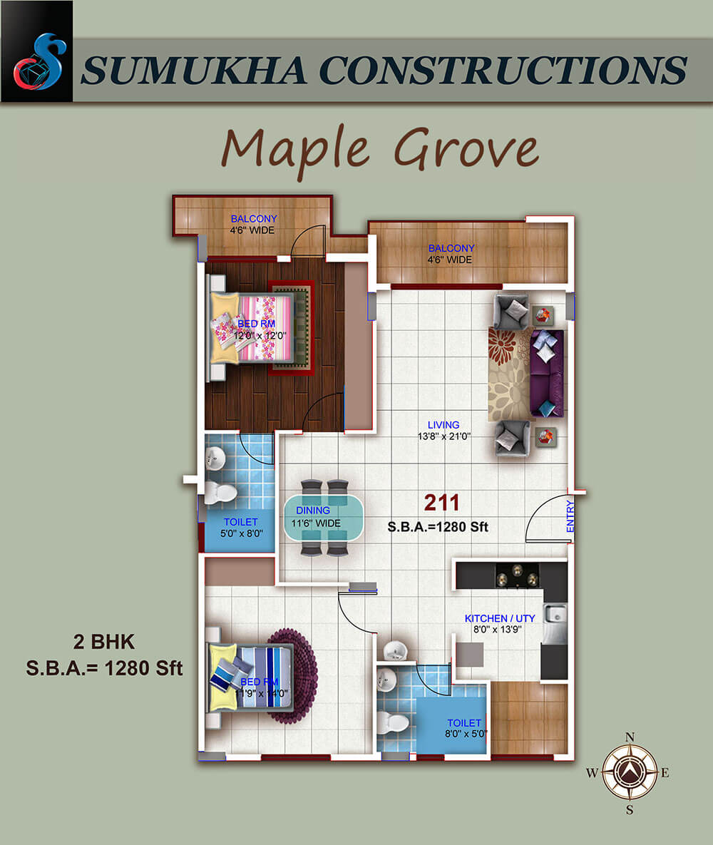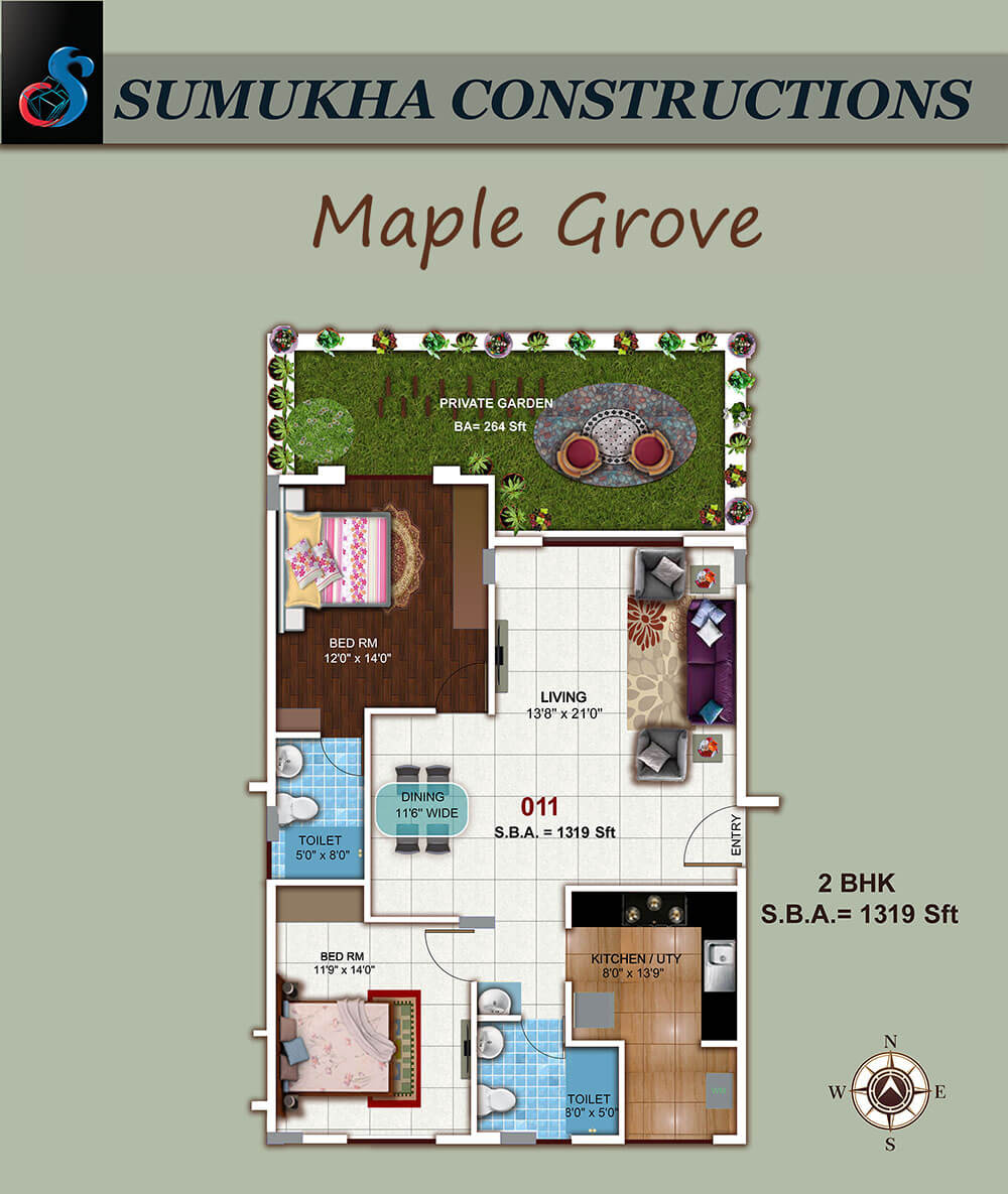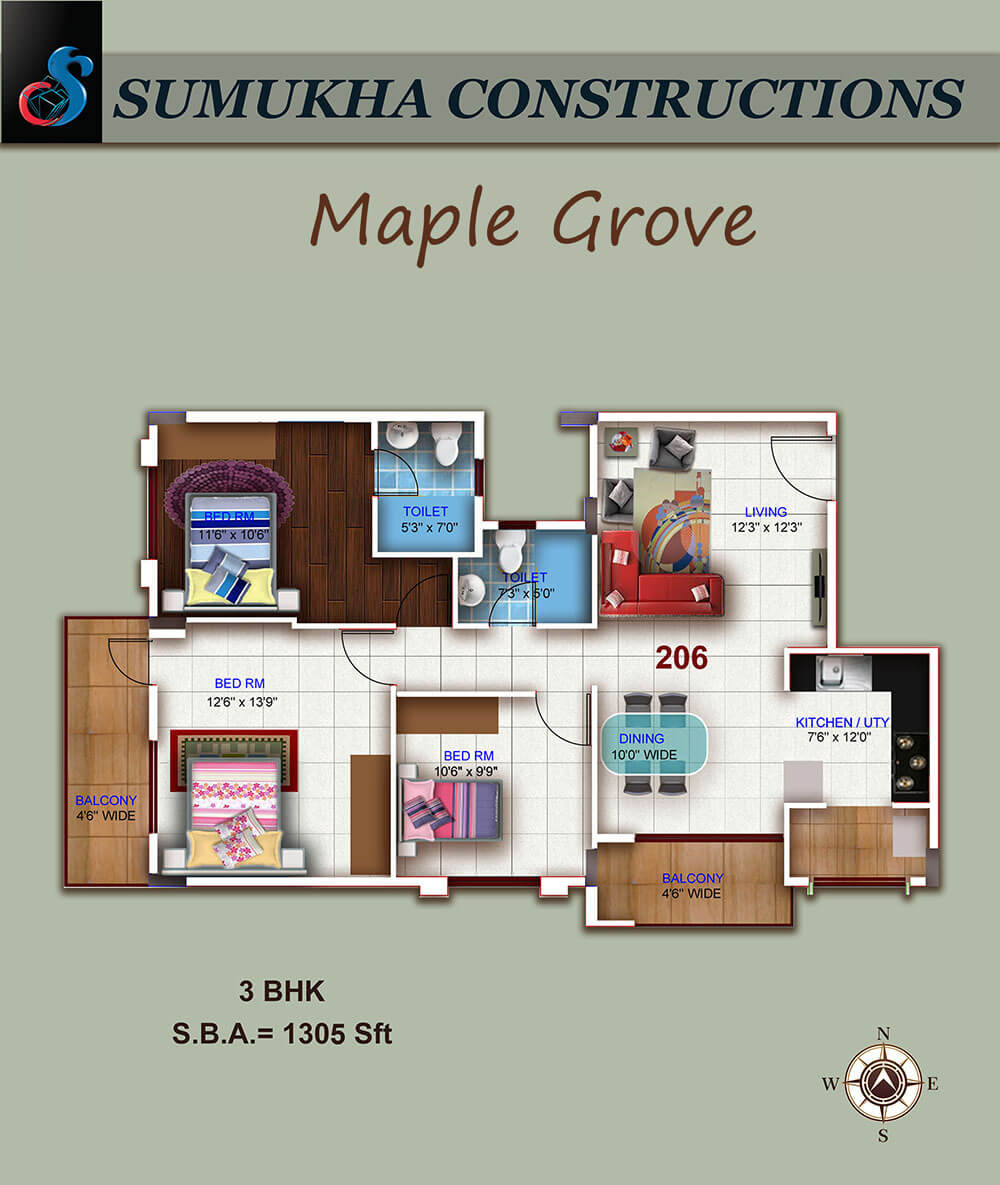 SUMUKHA MAPLE GROVE is a luxurious 2BHK, 3BHK, 4BHK & Duplex apartments by Sumukha Constructions, conveniently located in Akshayanagar off Bannerghatta road, which is noted to be one of the best residential layout within the vicinity of Bannerghatta road, proximity to Fortis, Apollo, IIM, DPS, PSBC and several leading shopping malls around.