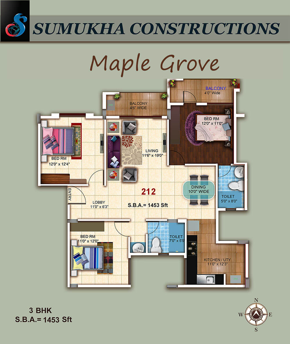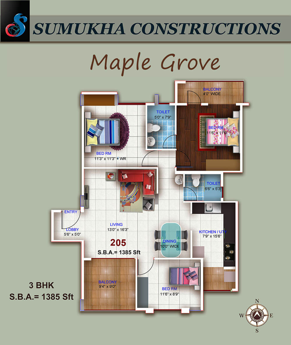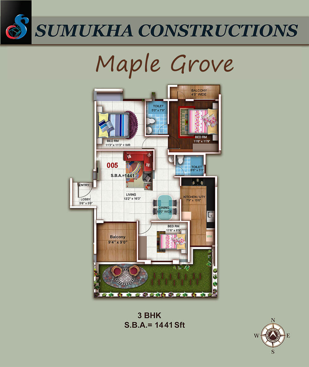 SUMUKHA MAPLE GROVE is a luxurious 2BHK, 3BHK, 4BHK & Duplex apartments by Sumukha Constructions, conveniently located in Akshayanagar off Bannerghatta road, which is noted to be one of the best residential layout within the vicinity of Bannerghatta road, proximity to Fortis, Apollo, IIM, DPS, PSBC and several leading shopping malls around.