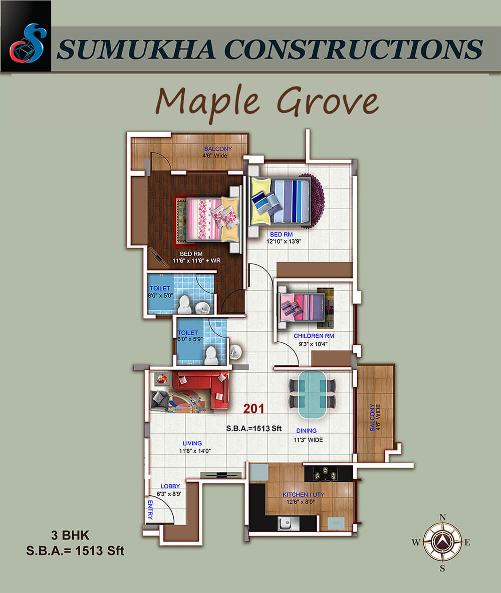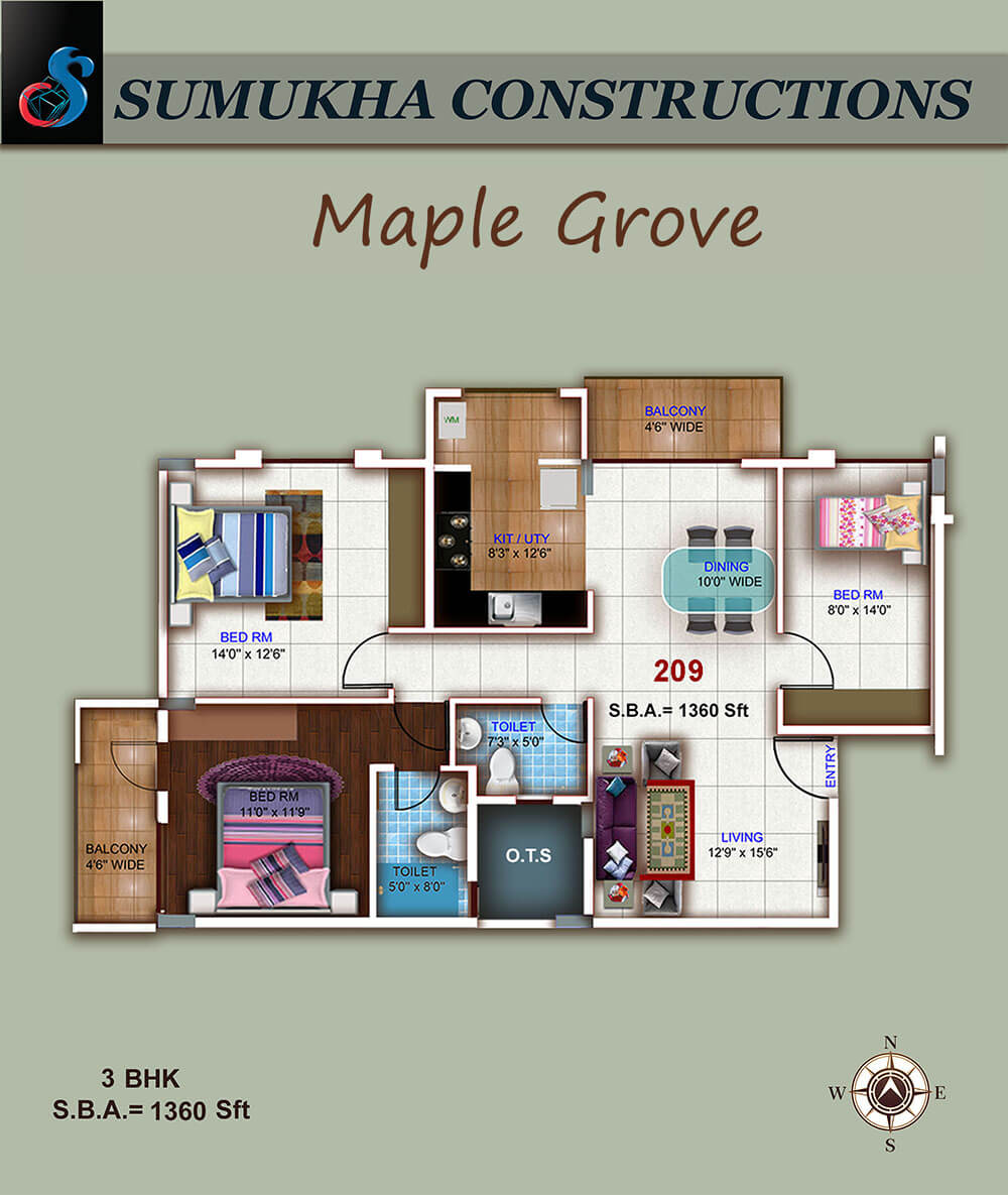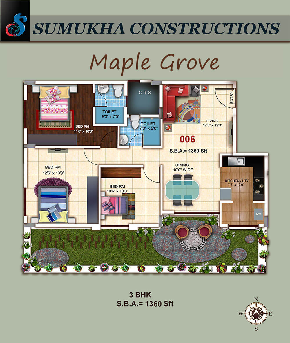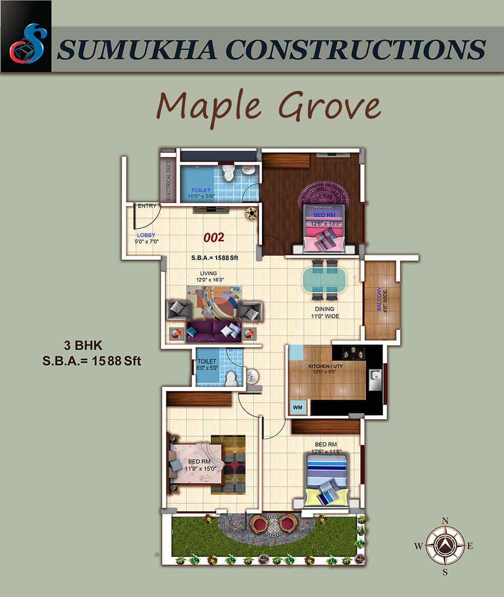 SUMUKHA MAPLE GROVE is a luxurious 2BHK, 3BHK, 4BHK & Duplex apartments by Sumukha Constructions, conveniently located in Akshayanagar off Bannerghatta road, which is noted to be one of the best residential layout within the vicinity of Bannerghatta road, proximity to Fortis, Apollo, IIM, DPS, PSBC and several leading shopping malls around.